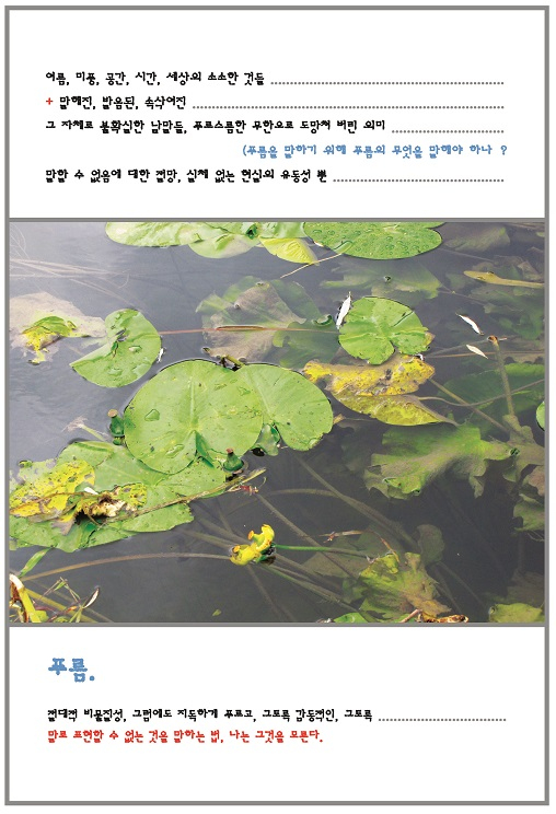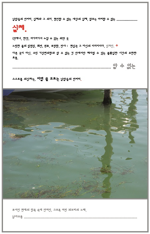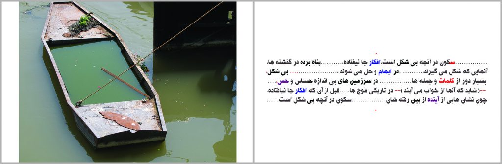 Elle fait écho à la plasticité du poème d’artiste dont elle est partenaire, auquel elle est associée, compère des mots de la poésie en un définitif non dire sous le silence glacé du papier photo en la chair duquel elle est incrustée ; non dire de la photo et si faible pouvoir dire des mots du poème laissant ouverte la porte de l’émotion, celle qui justement naît de l’incomplétude de ce dire.