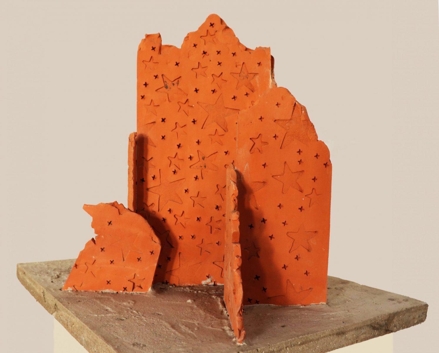 Bien plus tard, Brigaudiot, dans une de ses installations de très vastes dimensions réalisée à l’Abbaye de Beaulieu en Rouergue, Centre d’Art Contemporain, offerte à l’association Le Collège des Arts constituée d’artistes plasticiens et de philosophes pour plusieurs sessions d’été. Brigaudiot demanda à une artiste œuvrant dans le domaine de la céramique d’exécuter une série de têtes de morts destinées à faire partie d’une installation. La proximité de cette artiste lui permet quelques expériences en céramique, en harmonie, à la fois  avec la période des étoiles et avec les œuvres en 3D de la période Airports.