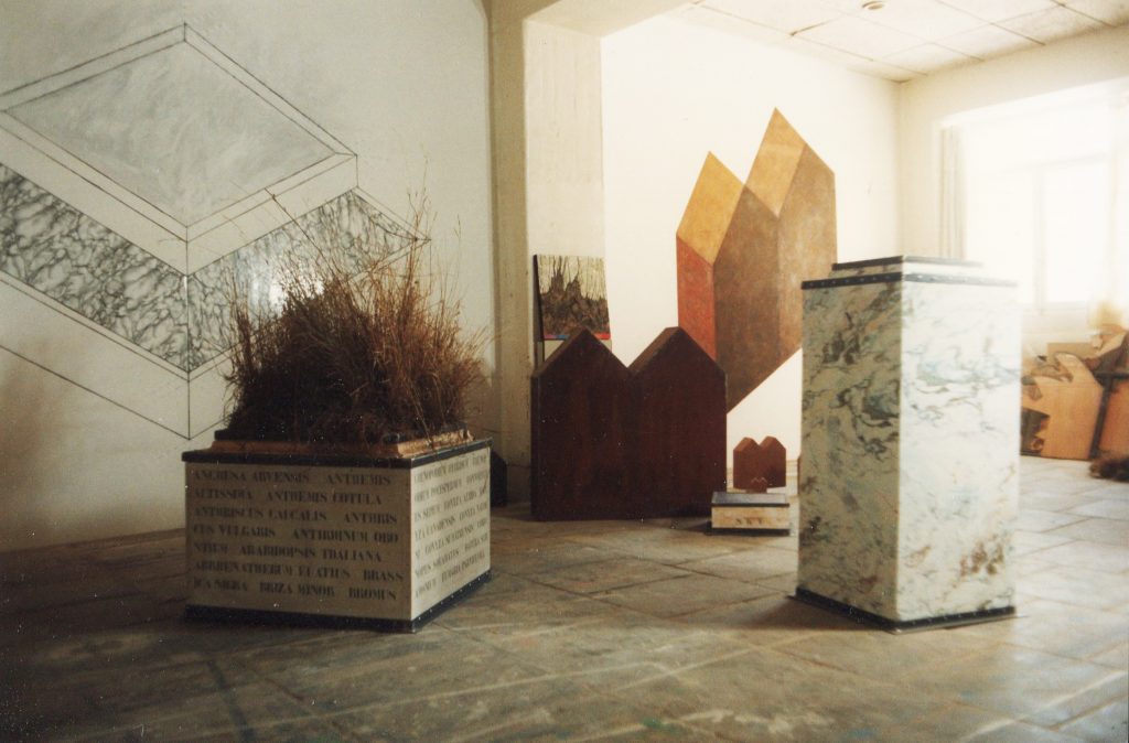 Plus tard, dans le contexte des Paysages Discontinus, il construisit des objets monumentaux en relation avec la question de la Nature (Monuments aux herbes folles, le Déluge).
