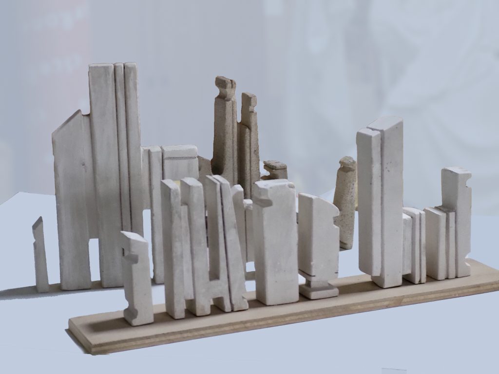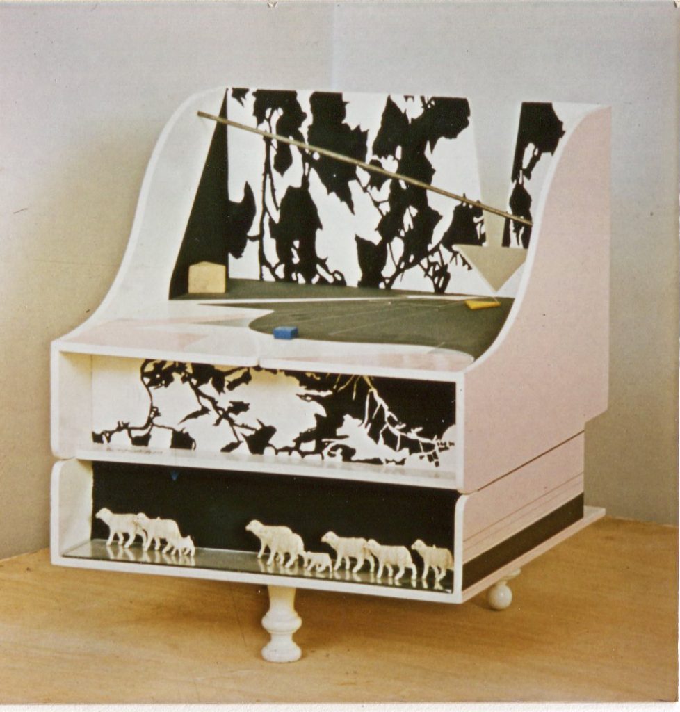 Toujours en relation avec les Paysages Discontinus, des constructions de type urbain, groupes de maisons miniature ou monuments aux herbes folles, vont nourrir les installations. En même temps, des objets se référant à différents instruments et machines seront des constructions en divers matériaux, acier ou bois, objets exposés tels quels ou intégrés à des installations, ou bien encore présentés face à leur étude et projet dessiné, démesurément agrandis, en une inversion de l’objet construit qui est le plus souvent de petites dimensions par rapport aux études préalables. Ainsi le projet se veut ouvert à l’imaginaire, la réalisation, quant à elle, referme la question abordée; posture de l’artiste dans son rapport au réel et à son image.