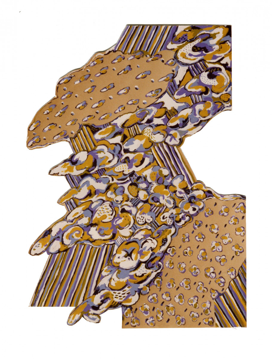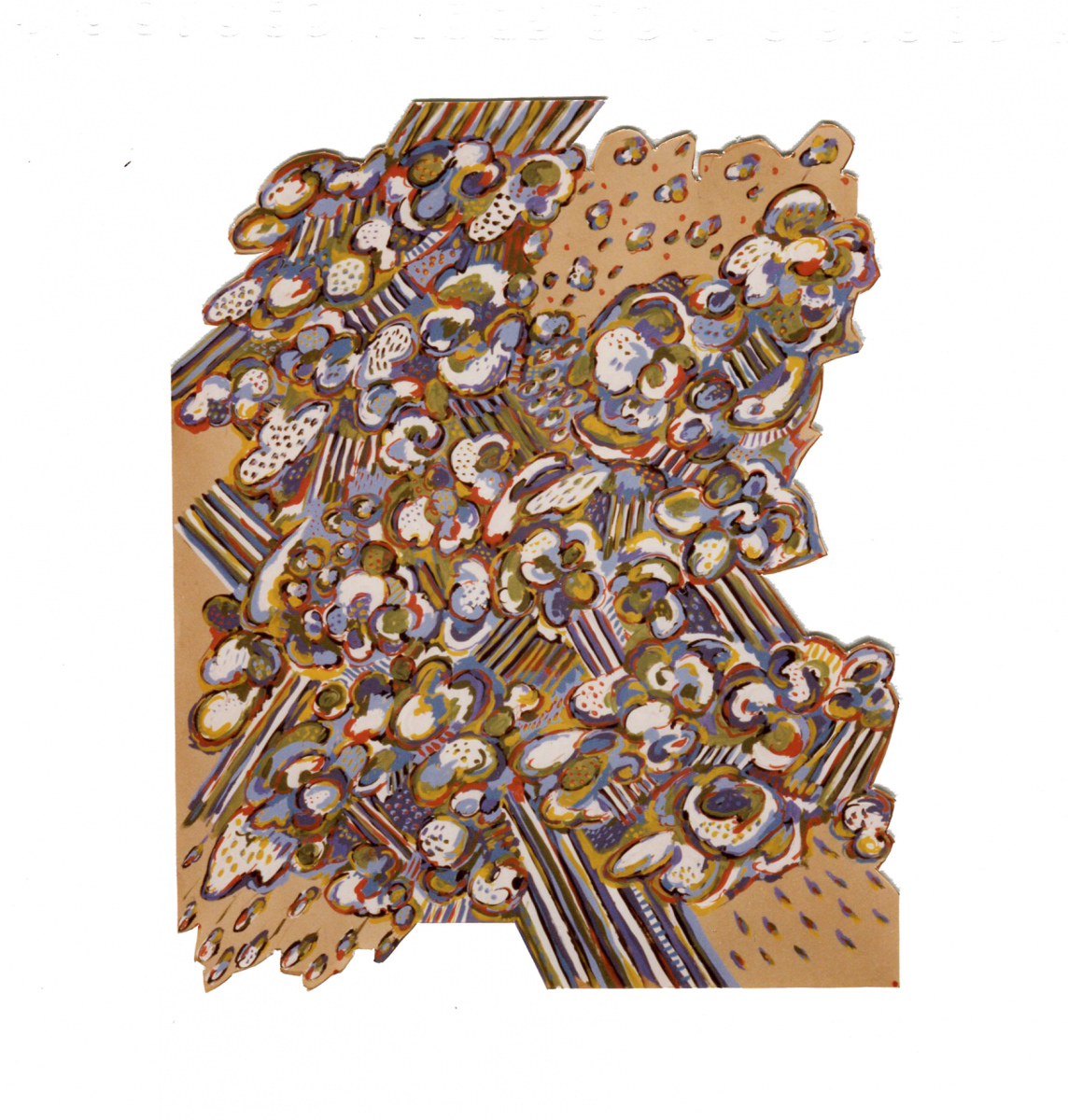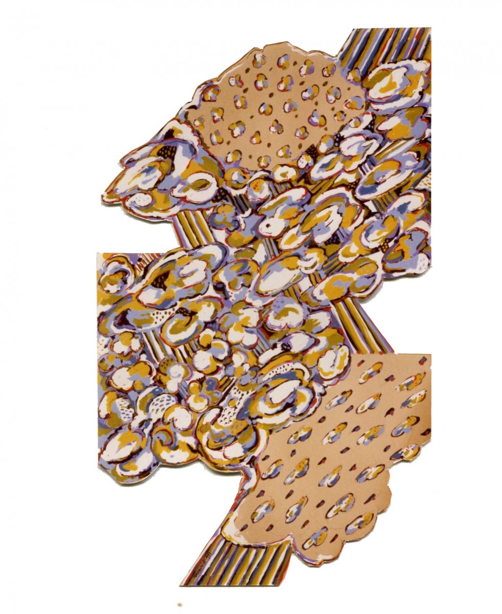 Il s’agit d’une série de travaux qui ont été exposés une seule fois, à Paris, Galerie Jacob, en 1983. Ils procèdent d’une prolifération formelle résultant d’un automatisme quasi gestuel et répétitif. Pour autant cela a fort peu à voir avec les pratiques de l’écriture automatique des surréalistes. Ces œuvres sont abstraites, comme il se dit, puisque rien n’appartenant au monde visible n’est figuré. Il s’agit donc d’une accumulation ordonnée/désordonnée de formes-couleurs dont le résultat est le plus souvent une pièce de grand format, irrégulier dans ses limites, découpé et accompagné d’un certain nombre d’éléments satellites qui siègent aux alentours de la pièce centrale. Le dispositif ainsi conçu oriente ce type d’œuvre vers une forme d’installation murale éphémère, surtout en ce sens que pour chaque accrochage le principe est d’adopter une présentation différente. Cette quête d’une modalité de présentation alternative de l’œuvre, en même temps que valide une seule fois, s’avère affirmer une cohérence intentionnelle et omniprésente chez Brigaudiot quant à prôner un art toujours in process. Ces quelques œuvres déterminent avec force une pratique qui va se développer et s’affirmer, selon différentes modalités chez Brigaudiot dans les paysages Discontinus, les installations murales, celles de la Genèse, I, II et III, puis dans Figures de l’Ange.