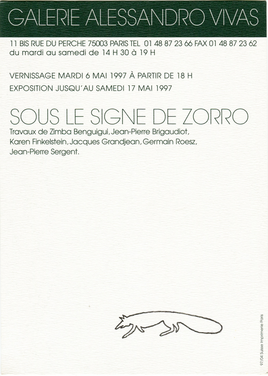 > 1997, Sous le signe de Zorro, galerie Alessandro Vivas, Paris. Catalogue.